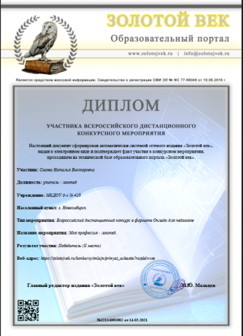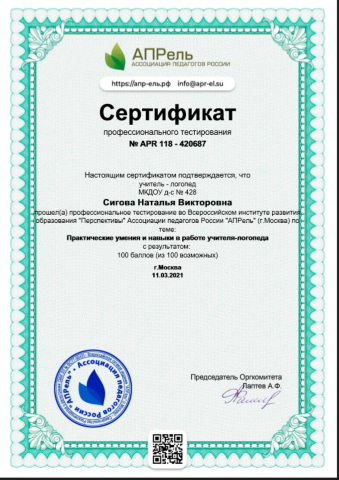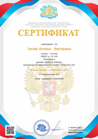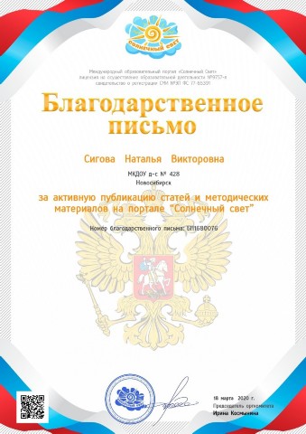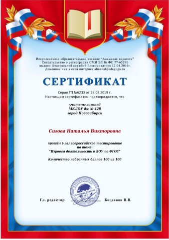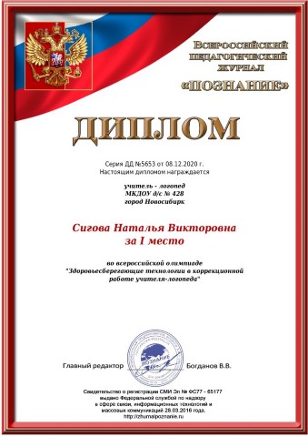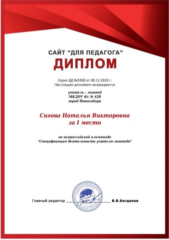 Сигова Наталья Викторовна - Учитель-логопед МКДОУ д/с № 428